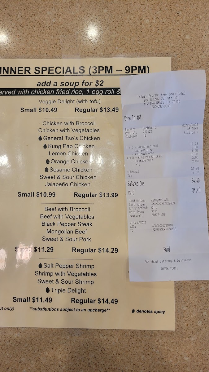 Introducing the menu of Taipei Express, a culinary gem in New Braunfels, Texas, where every dish is a delightful journey through authentic Chinese flavors. Renowned for its Lemon Chicken with Fried Rice and Sweet and Sour Chicken, each meal bursts with flavor and generous portions that satisfy the palate without overwhelming it.